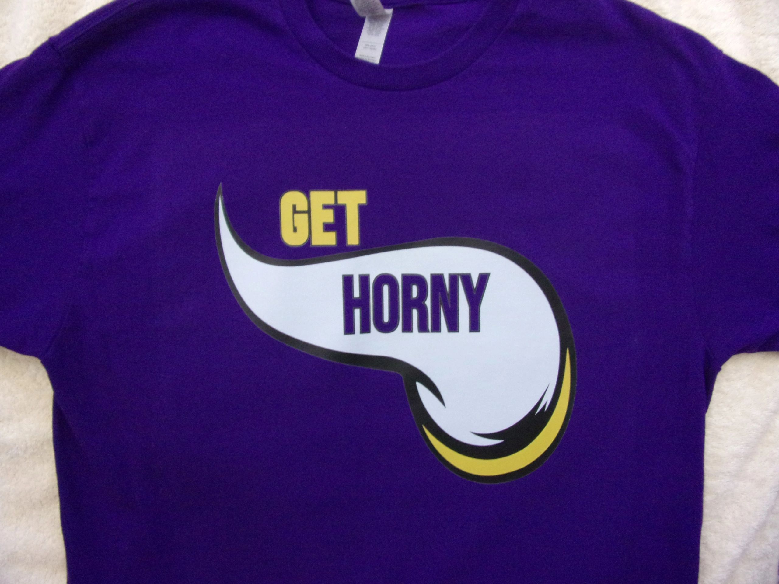 Get Horny in Minnesota MN on a Vikings Viking Horn T Shirt Tshirt Cotton Gildan Size S, M, L, XL, 2XL